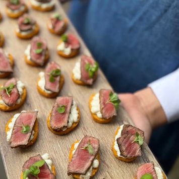 Refined cocktail bites crafted for weddings, celebrations, and unforgettable gatherings. Our canapé menus feature elegant small bites designed for cocktail hours and roaming service, built around seasonal ingredients and thoughtful presentation.